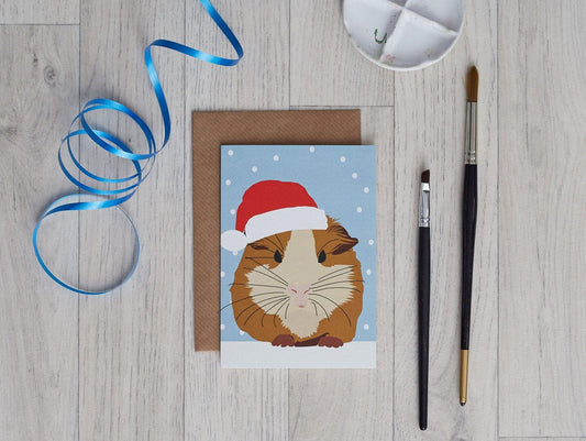Treacle the Guinea Pig Wrapped in Lights Christmas Card