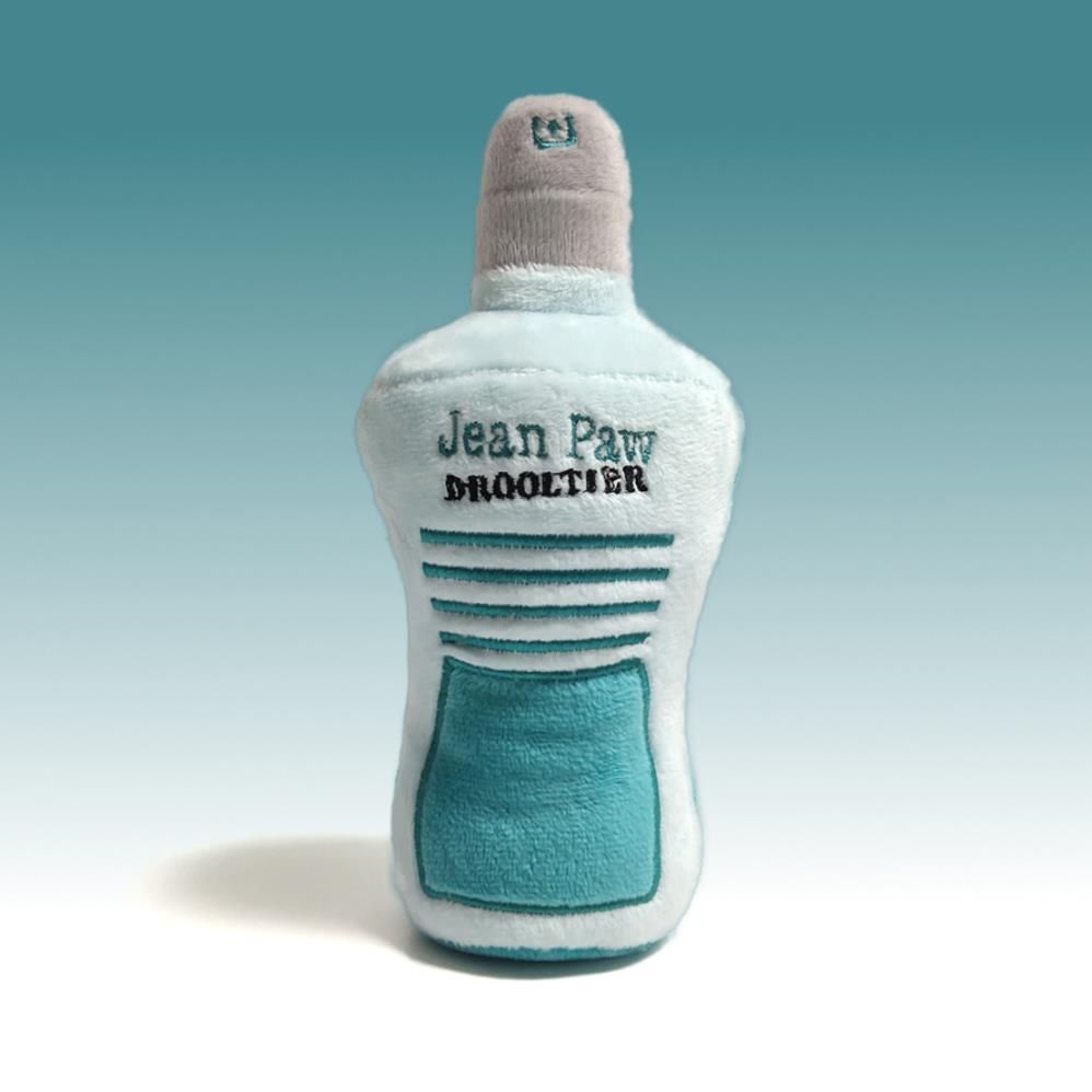 Jean Paw Drooltier Paw Homme Perfume Bottle Plush Dog Toy